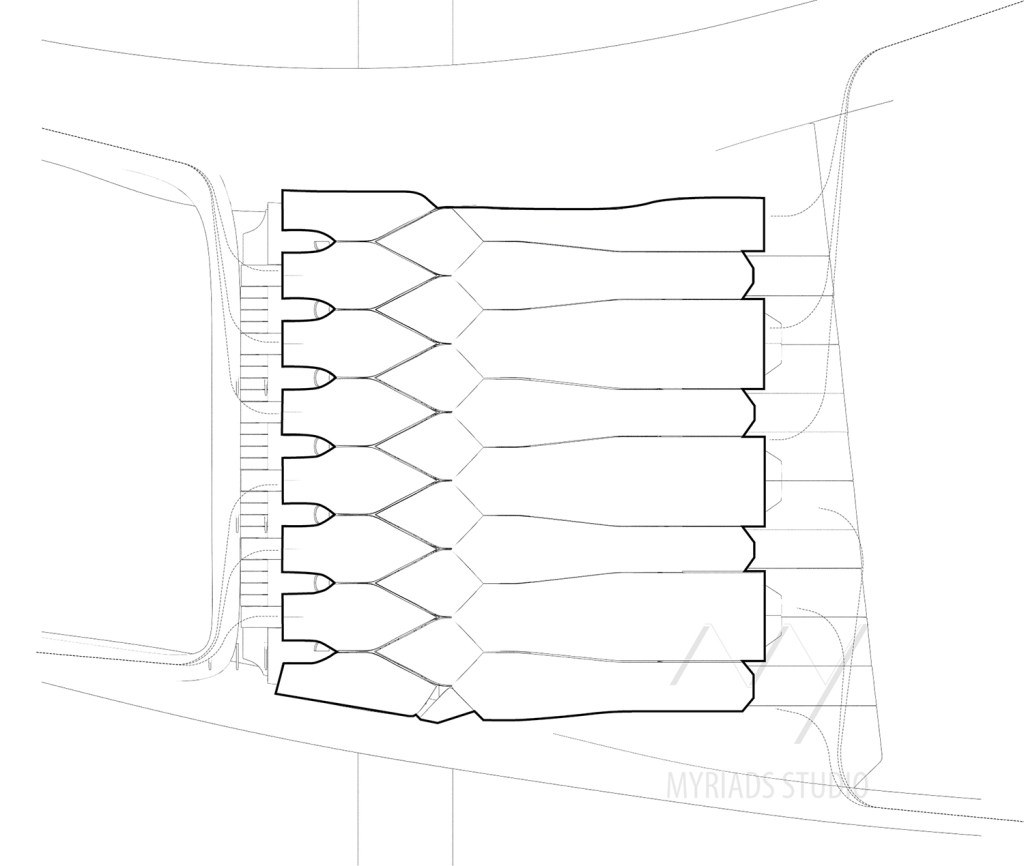 However, this efficient system is merely part of the future. The advanced boarding and logistic system could operate the building efficiently as the machine, saving a grant amount of time for human beings. However, this is not suggest anything about what people should infill this extra period of life. Will that be another efficient event, or can it free up the possibility of contributing our culture fabrication? In the design, we intent to attach an anti-speed function to infill the space between efficiency.